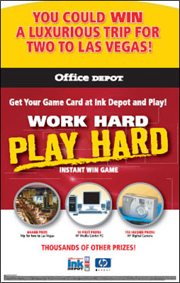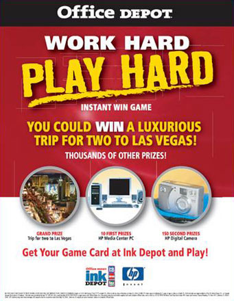 Swimming in a sea of sameness, Office Depot was challenged with protecting market share and increasing comps in its most profitable revenue category – Ink. Working with vendor partners for funding and prizes, the agency created an integrated national campaign supported by aggressive online, offline, and traditional media that instantly rewarded small and medium sized businesses for product purchases. The campaign was the largest and most successful promotion of its time. Additional work included other promotional vendor programs and new product launches.